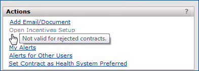 - In the Actions panel, click the Set Contract as Health System Preferred link. Click Yes to confirm. (The link text changes to Remove Health System Preferred Setting, which disables the flag when clicked.)