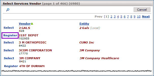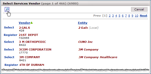- To find a services vendor, enter characters from the vendor name.