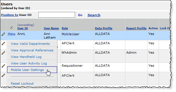 Other user profile options control whether mobile application users can issue items or return items to inventory, and whether users can adjust inventory quantities during a pick (Figure 4).