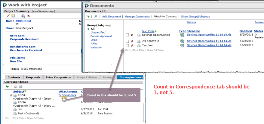 Incorrect Count for Multiple Attached Documents on the Correspondence Tab
