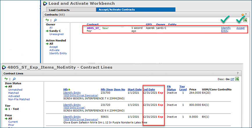 When a contract is uploaded and all of its prices are expired, the contract no longer appears for activation on the Accept/Activate Contracts panel.