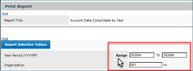 Tip: When the YearPeriod field is a selection field, use the Range operator to enter a range of periods in the same year, or different years when you run the report (Figure 9).