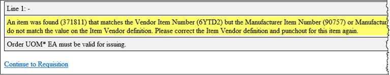 - Unclear error message for punchout items (for Staples) returned with incorrect MIN values.