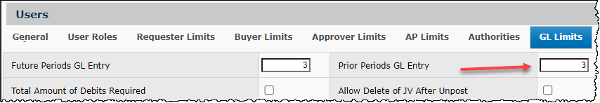 - When a journal voucher was re-posted, ERP was not checking the user's setting for the Prior Periods GL Entry allowed (Figure 6).