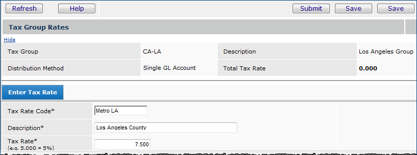 Figure 5 - Adding a New Tax Rate to a Tax Group