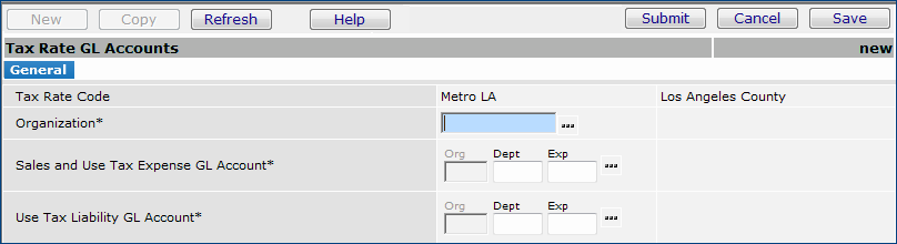 Note: The tax accounts must exist in each organization's Chart of Accounts before you can assign them to tax rates.
