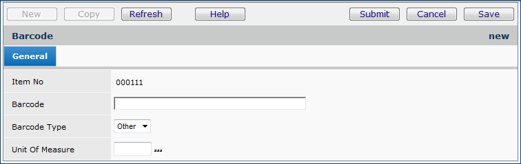 Enter the barcode in the Barcode field.
