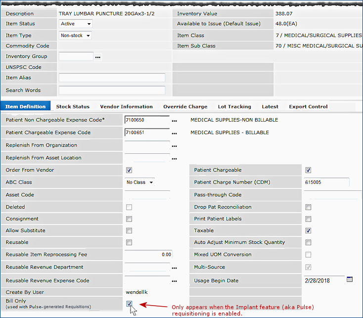 Implant Tracking Mobile Requisitions Only: Setting the Bill-Only Flag on an Item Inventory Record