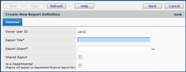 Custom reports are implemented using report objects. A report object is a logical view into the database -- it contains data from various related database tables. A user's ability to create, run, and/or view specific reports based on their report objects depends on whether a Report Profile is assigned to the system User ID; and if so, which Report Profile. A Report Profile limits the report report objects that a user can access, so that not all users at a site may be authorized for all reports. A site's system administrator can permit or restrict viewing and / or report creation among users at a site. If you need access to custom reports, see your site's system administrator.