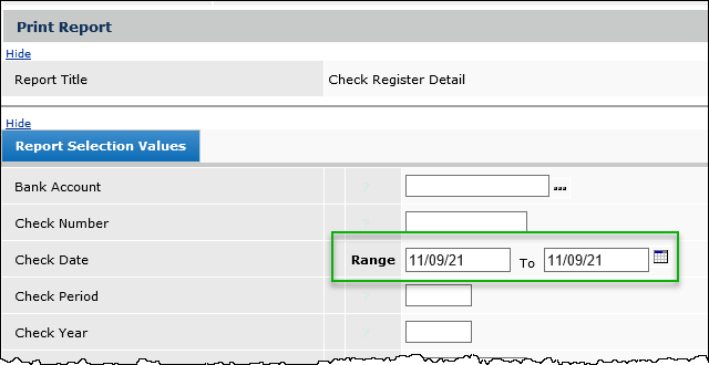To get information for a single date, enter date values as a Range, with the same date in both fields of the range; for example (Figure 29):