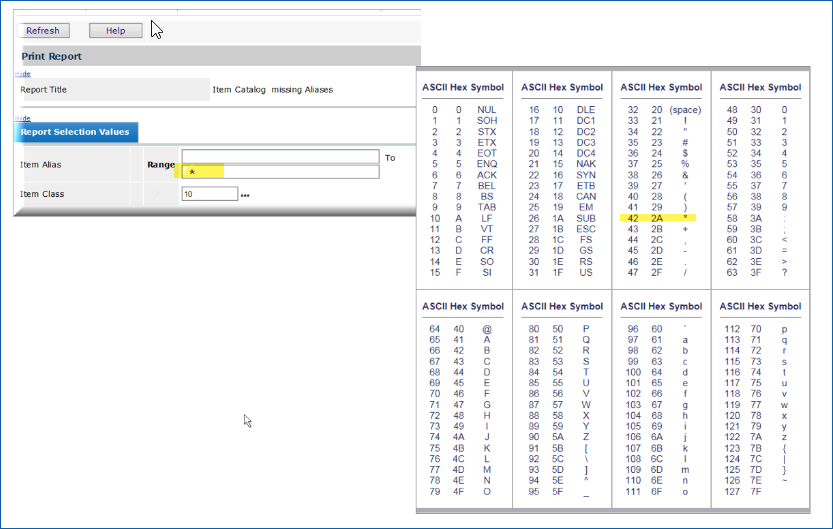 ERP uses an ASCII sorting sequence for characters in which some characters (e.g., all letters) have a "higher value" than other characters, such as *.