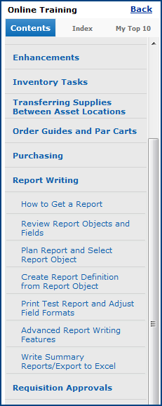 Several modules on the Training menu will help you work with reports. Figure 1 displays the reports training lessons.