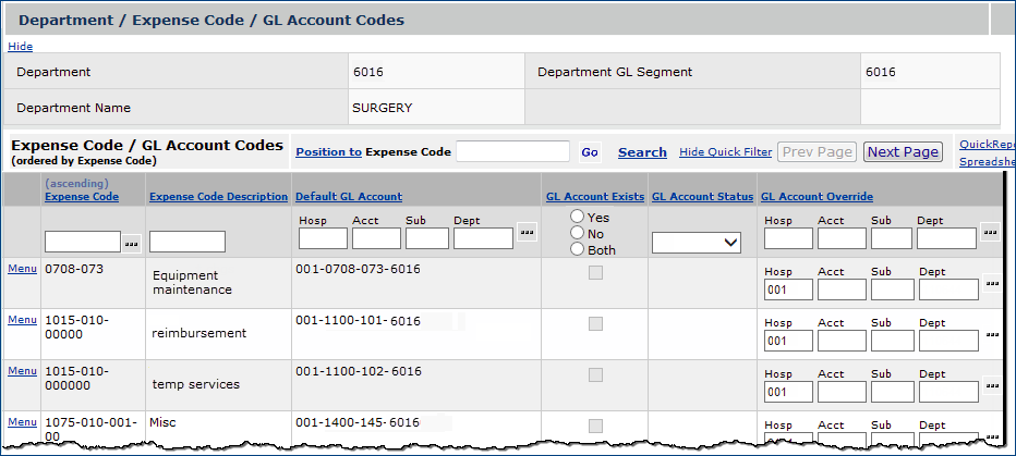Important: This report is only accurate for departments that are in the system's Department Table. In particular, sites that do not have GL validation enabled may have departments without the appropriate associated accounts. When this situation exists, the report does not include those accounts. Users may wish to review their department records to make sure that accounts are set up correctly before running this rep