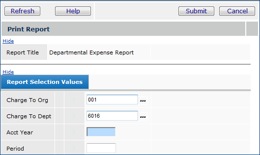 When the Charge to Org or Charge to Dept is blank, the report runs for all organizations/departments.