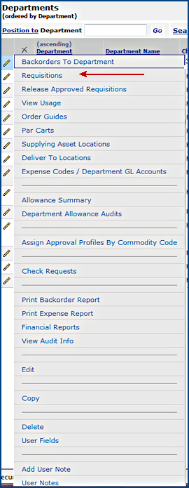 1. From the Materials Management main Contents, click Requisitioning > Departments.