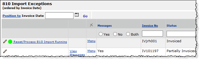 Field selected: A new EDI 810 will attempt to process when an incomplete invoice is present for the same PO. The system deletes the existing incomplete invoice and resets the 810 that created the invoice to a status that will allow it to reprocess as a new import.