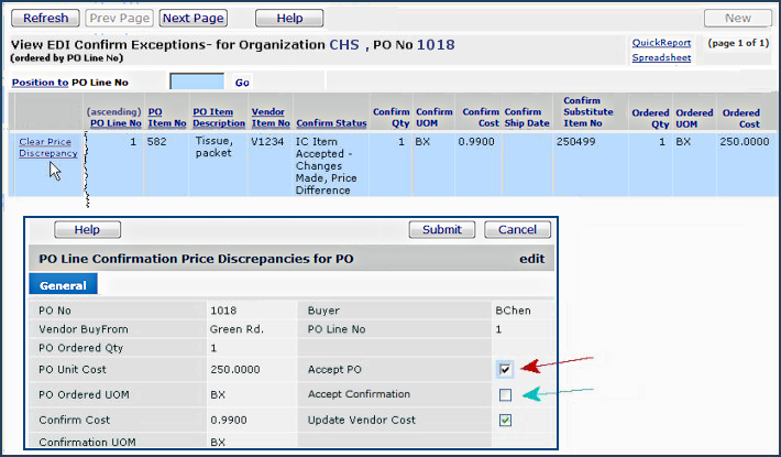 This feature helps you handle an EDI 810 invoice and PO mismatch.
