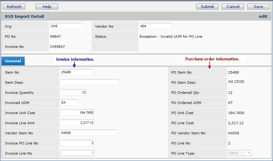- The EDI 810 invoice has lines that do not match the associated PO.