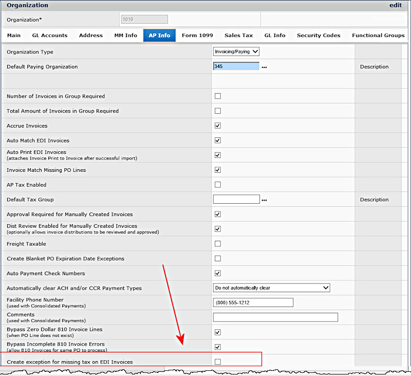 The Use EDI Invoice Tax Tolerances field is audited.