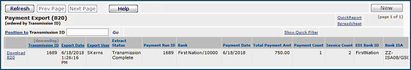 You can view the Payment Export (EDI 820) list and download an EDI 820 document, if you wish.
