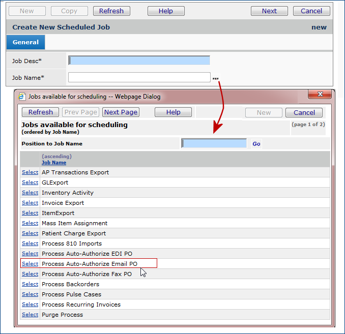 2. Select the Job Name "Process Auto-Authorize Email POs." (See Figure 3.)