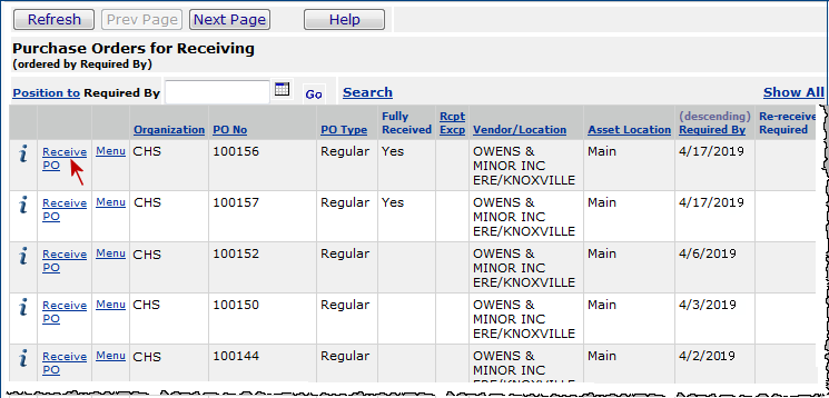 or instead of Menu. For example, the Purchase Orders for Receiving list has the action Receive PO on each row Figure 2. (Click Receive