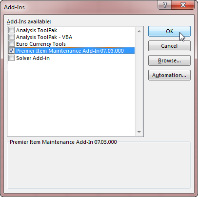 Figure 9 - Using the Browse Button to Find the Item Maintenance Add-In File