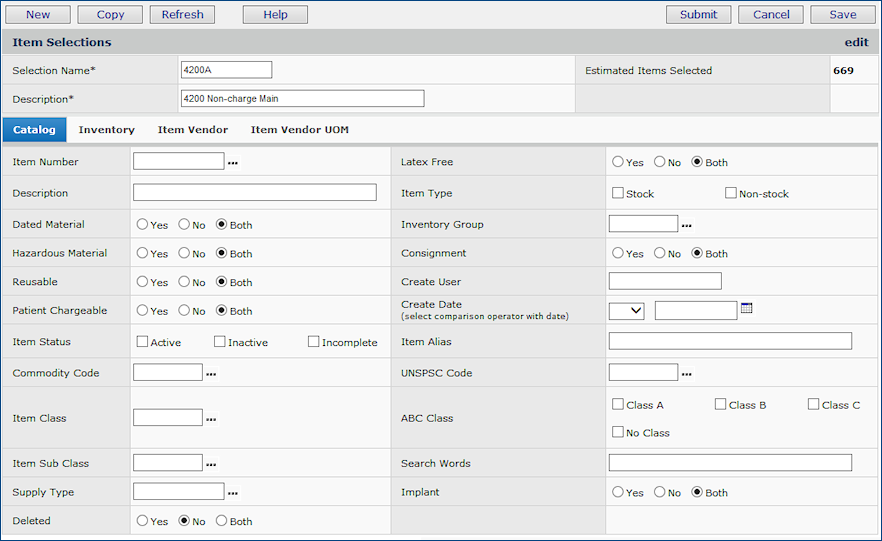 - For additions or changes, the value in this field on the Items worksheet is copied to any new or existing item inventory records. See the discussion in the Organization topic: Assign Patient Charge Number (CDM) From Catalog.