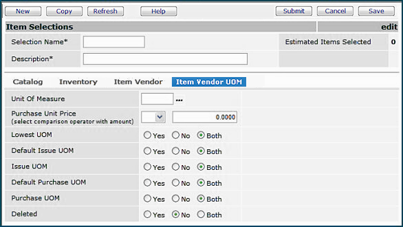 UnitOfMeasure A unit of measure for the item. ItemVendorUOMs Y Text. Maximum length = 2 characters.