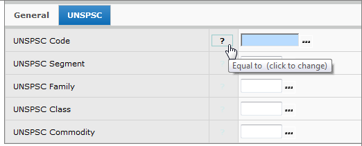 Figure 4 - Setting Comparison Operators for a Search by UNSPSC Code