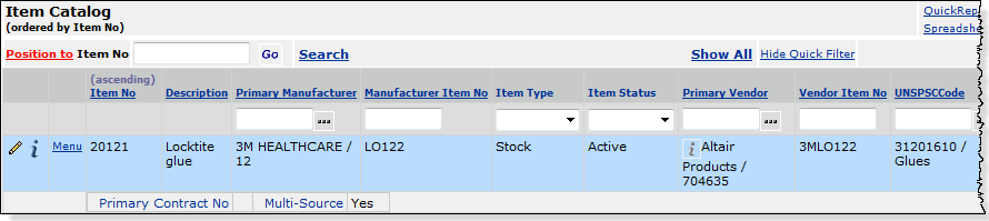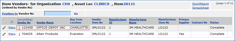 For a multi-sourced item, at least one asset location has a unique item vendor record that exists just for that asset location. (The asset location may also use the *PUBLIC item vendor records to order the item, but does not have to.) Figure 3 is an example.