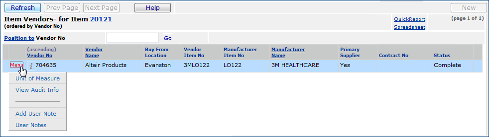 Note also that you can use the Menu next to a vendor to identify a vendor as the Primary Supplier.