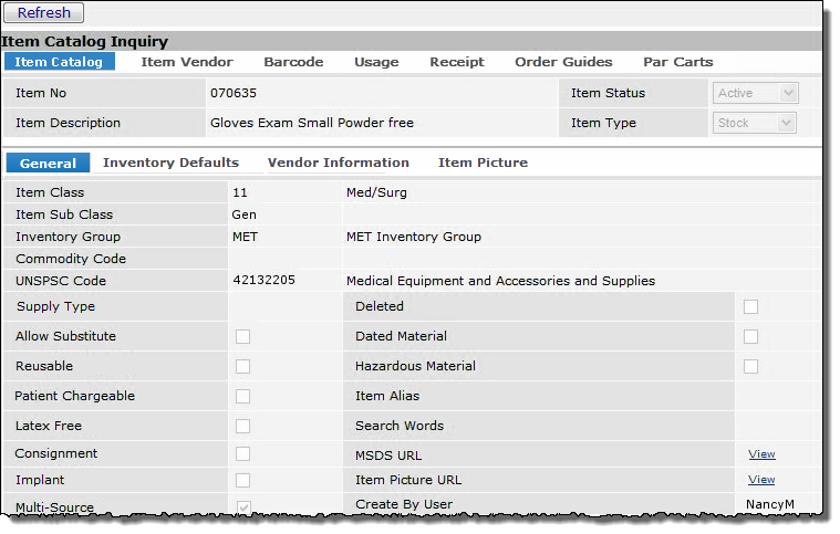 Note: Depending on features enabled for your site, more details may appear on the "Item Catalog Inquiry" page than those displayed in Figure 1.