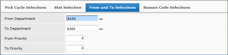 - The From and To Selections tab lets you identify a department or a range of departments whose approved requisitions should be included in the Quick Release job. If you only enter a "From" department, the system builds a range of departments, beginning with the "From" department, and ending with the last department. If you only enter a "To" department, the system builds the range of departments beginning with the first department and ending with the "To" department.