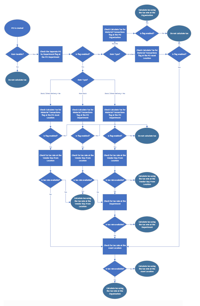 - The system retrieves the current tax rate for a taxable vendor buy-from location, department, asset location, or organization using the rules