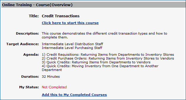 From the Online Training menu (shown above),