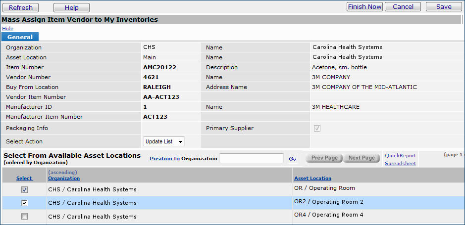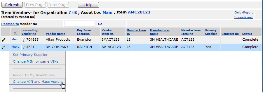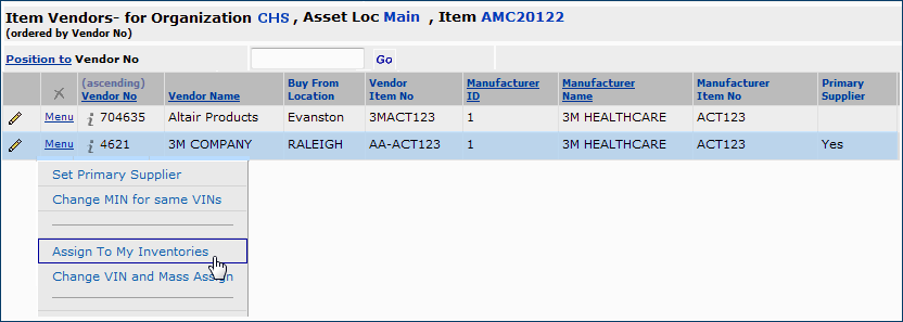 Note: Several mass maintenance features are available for working with multi-sourced vendors for items in several inventories (asset locations).