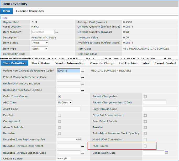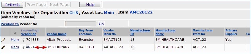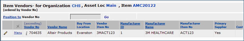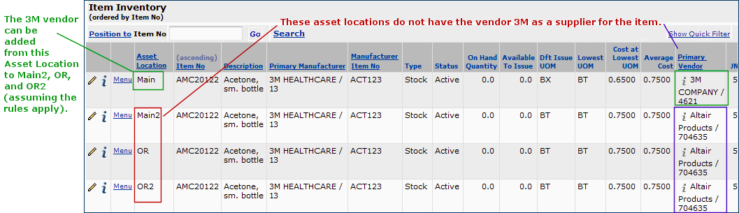 This feature lets you change the vendor item number for a multi-sourced item in one asset location, and optionally, in other asset locations where same item/vendor is inventoried. A few rules apply: