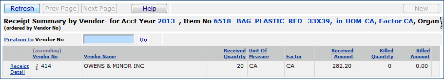 Summary receipt statistics for the item appear by vendor. Clicking Receipt Detail displays data by month (Figure 5).
