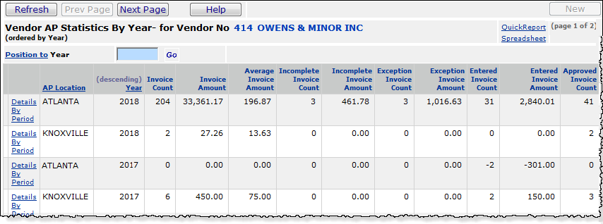 - The system displays summary statistics for each year that data exists for the vendor (Figure 6).