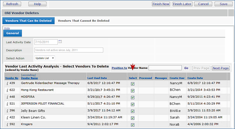 - To create a Vendor Last Activity Analysis, you will need to set the role object "VendorsAA" to All.
