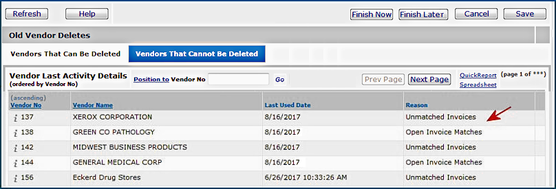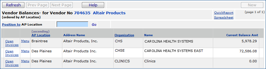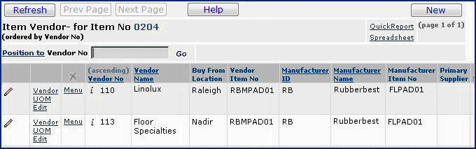 - To view a particular vendor, on the Quick Click menu, enter the Vendor