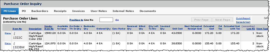 The system includes the stock, non-stock and non-file items on a PO for your department only. The Ship To Location shows your department's delivery location.