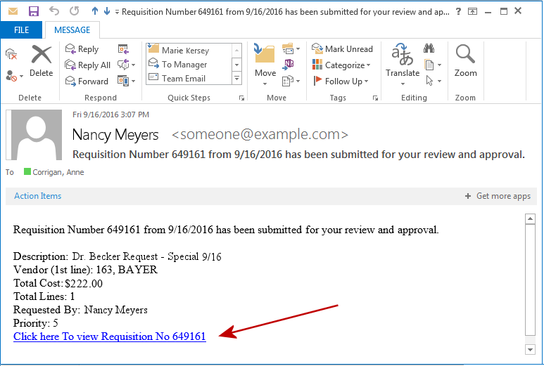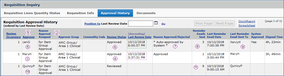 - The Requisition Direct Approval User or Requisition Approver Group assigned to a user or department reviews and approves for item