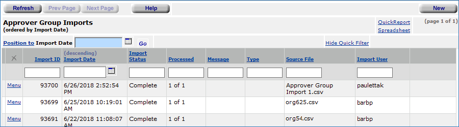 - After making corrections, from the import list, click Reprocess to rerun the process for any imports that do not have an Import Status of Complete.