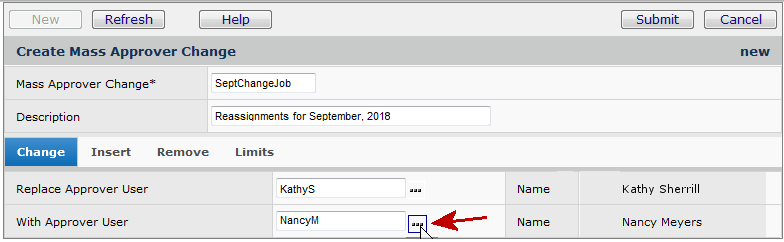 Figure 41 - The Limits Tab for a Mass Approver Change Job