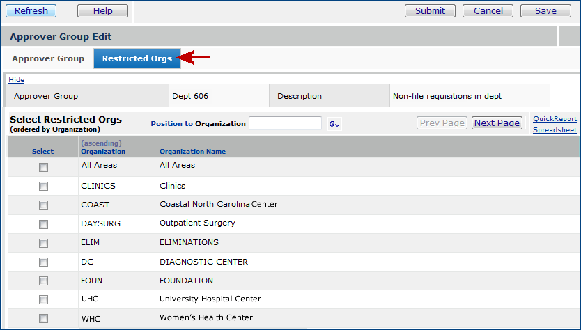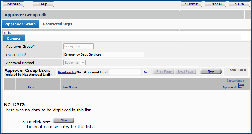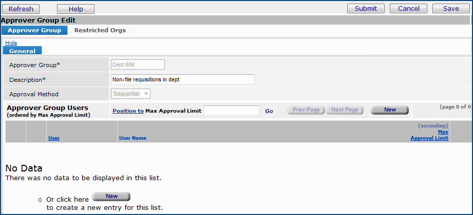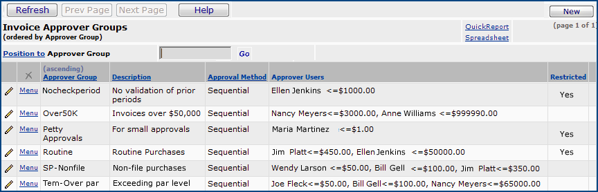 - Search Approval Type lets you select a filter for the bottom list. Options are: all types of approver groups, invoice approver groups only, requisition approver, or journal voucher groups only.