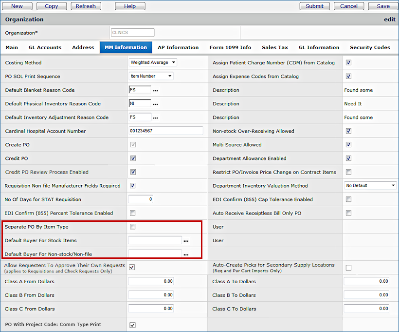 Depending on the structure of your hospital, you can set up different configurations for requisition