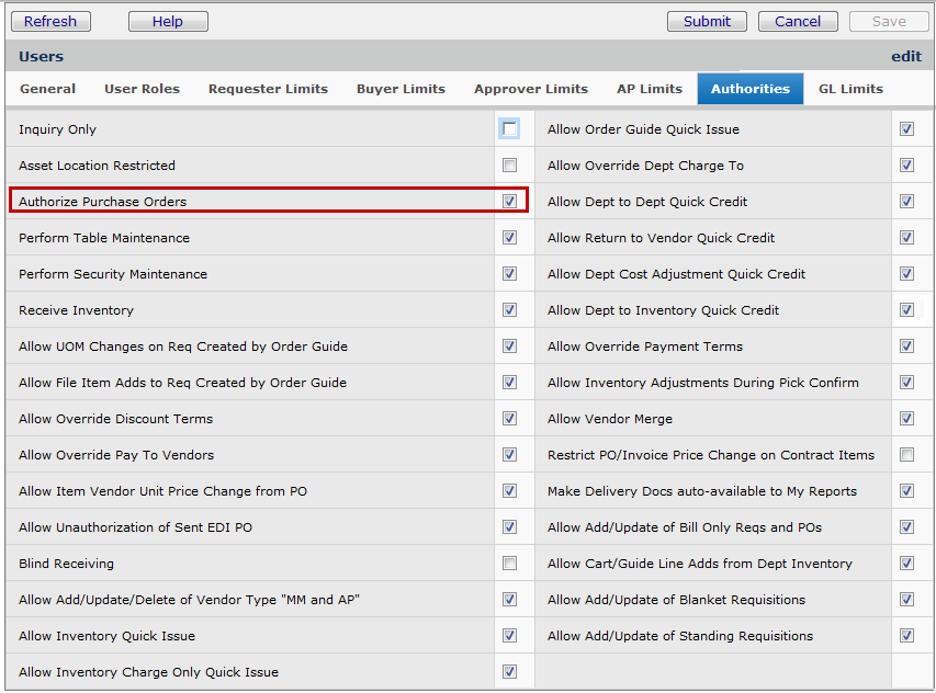 and permissions for users, including users who approve requisitions, invoices, check requests, and journal vouchers.