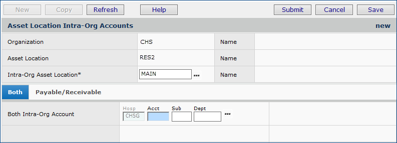 At the end of this topic are "walkthrough instructions" for creating manual Inventory Transfer Requisitions between asset locations in the same organization. The instructions are basic, and are intended for users whose sites are already set up for transfer requisitions. Other users should read the detailed material that begins in the next section "Define Asset Locations."